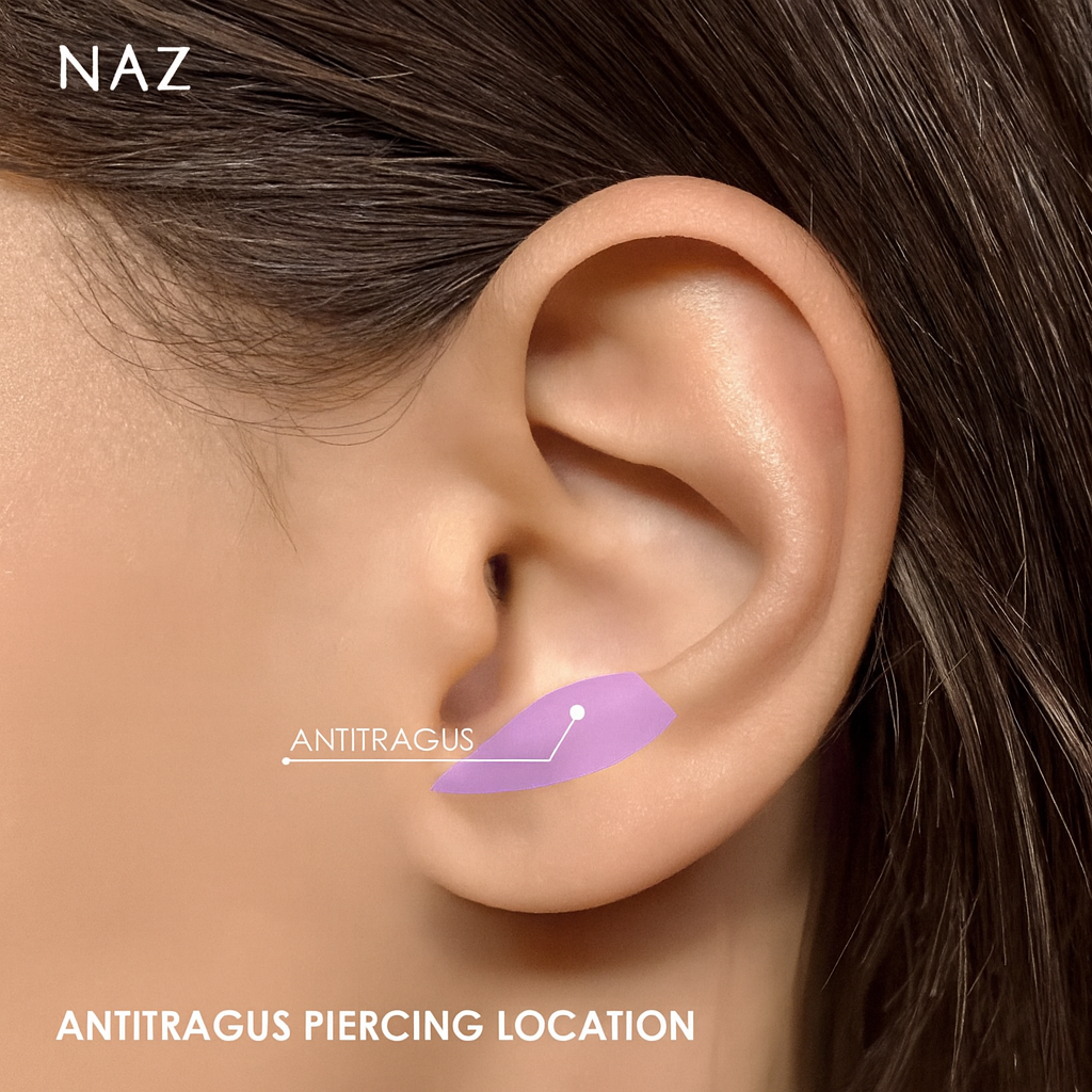 Positioned on the inner cartilage above the earlobe, this piercing offers a unique look.
