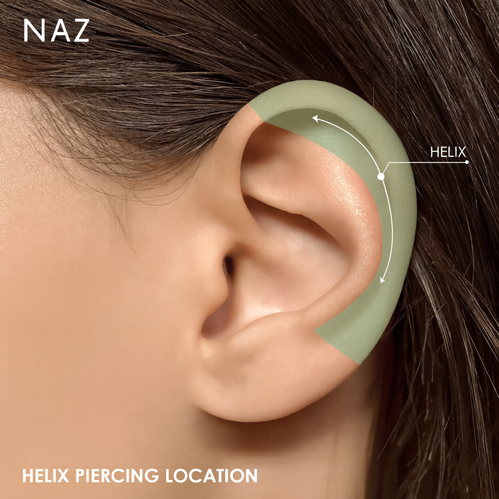 One of the most popular cartilage piercings, customizable with hoops and studs.