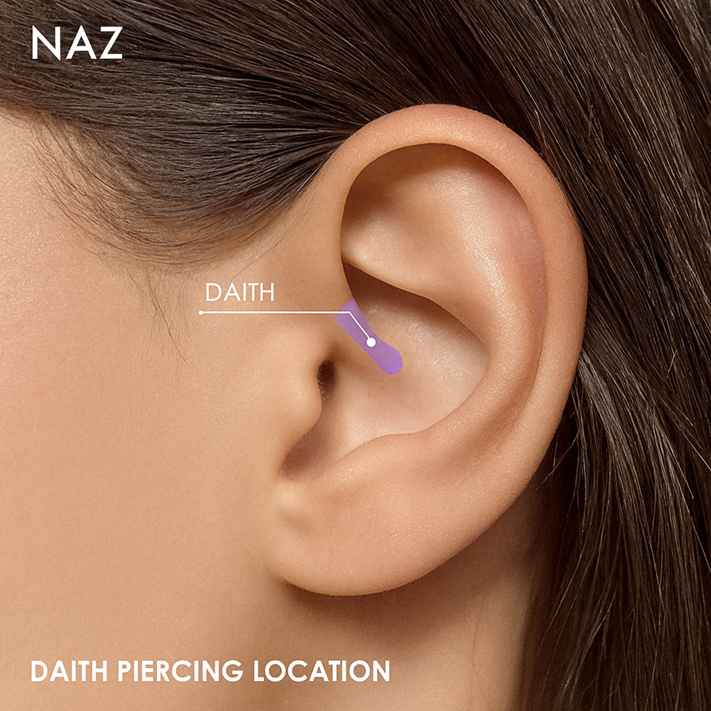 Pierced through the innermost cartilage fold, it is often associated with migraine relief.